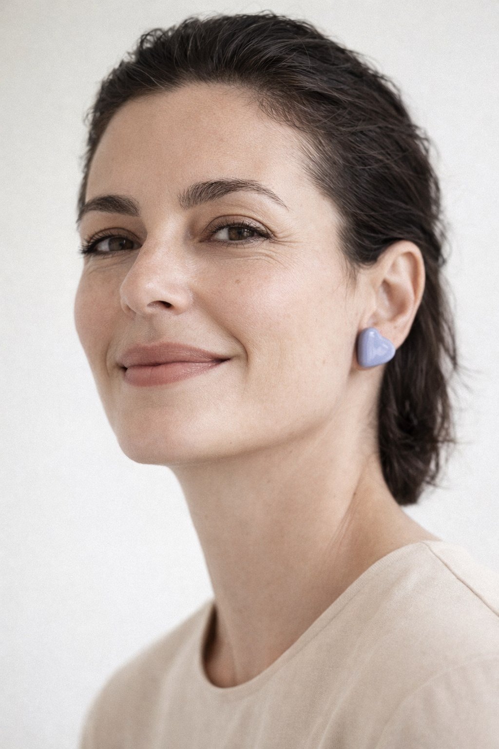 De líneas suaves y volumen contenido, los pendientes Asteria Corazón Lila Mini reinterpretan la forma del corazón desde una mirada contemporánea y esencial, alejándose de lo literal para convertirse en una pieza delicada y atemporal.