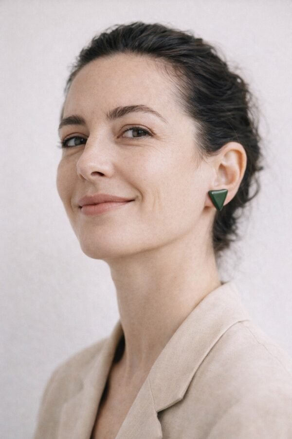 Envíos a España. Coste según destinoDe líneas geométricas y volumen contenido, los pendientes Asteria Triángulo Mini Verde reinterpretan la forma del triángulo desde una mirada contemporánea y esencial, dando lugar a una pieza equilibrada, sutil y atemporal.
