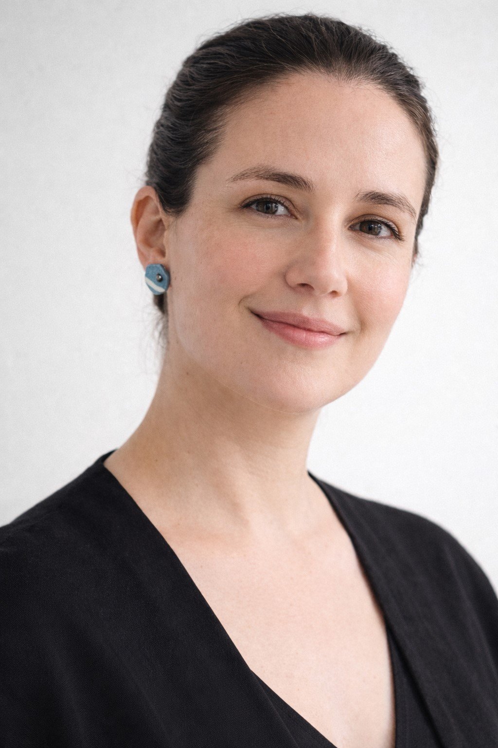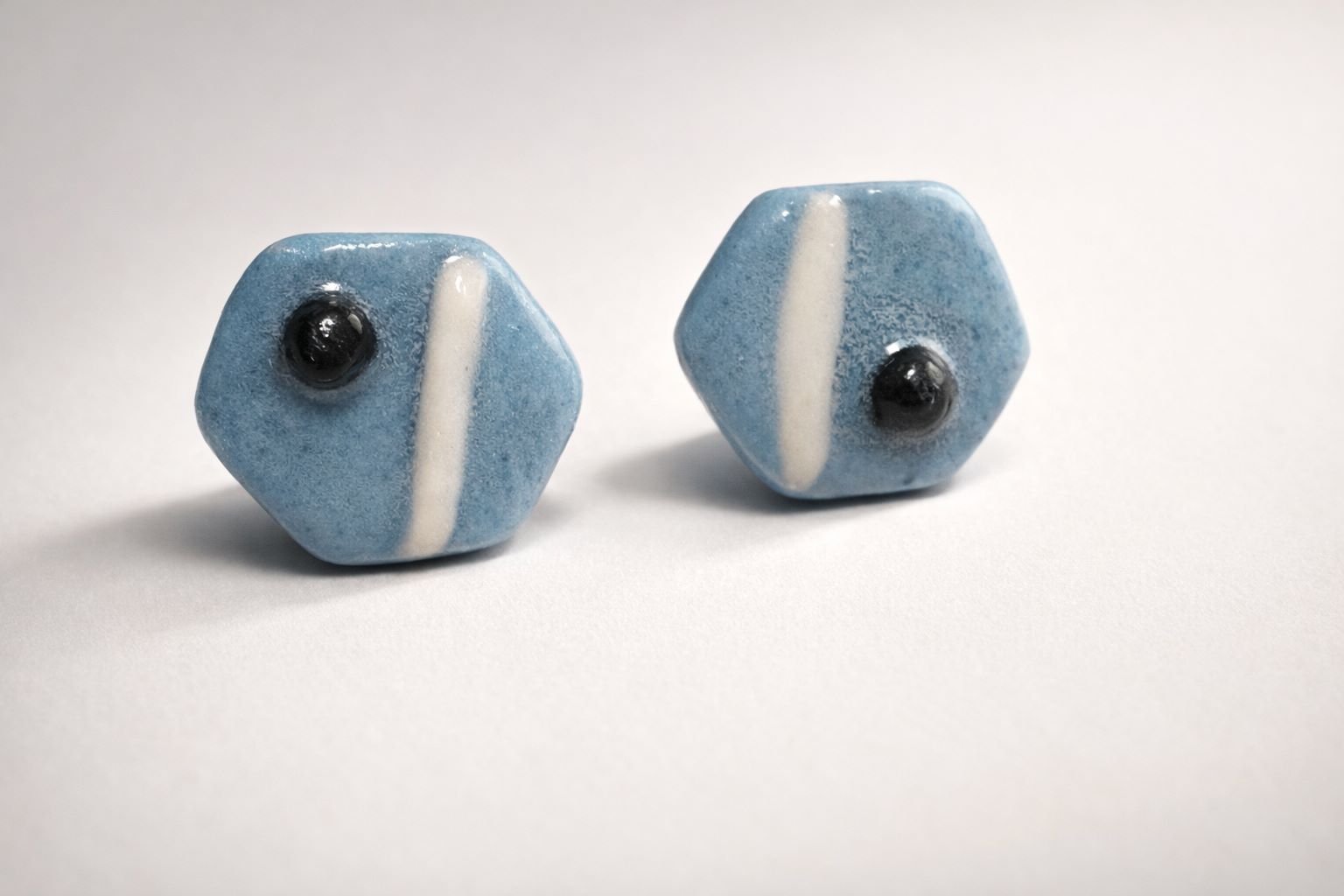 Pendientes de porcelana en tonos azul suave, donde la geometría se encuentra con el gesto orgánico.