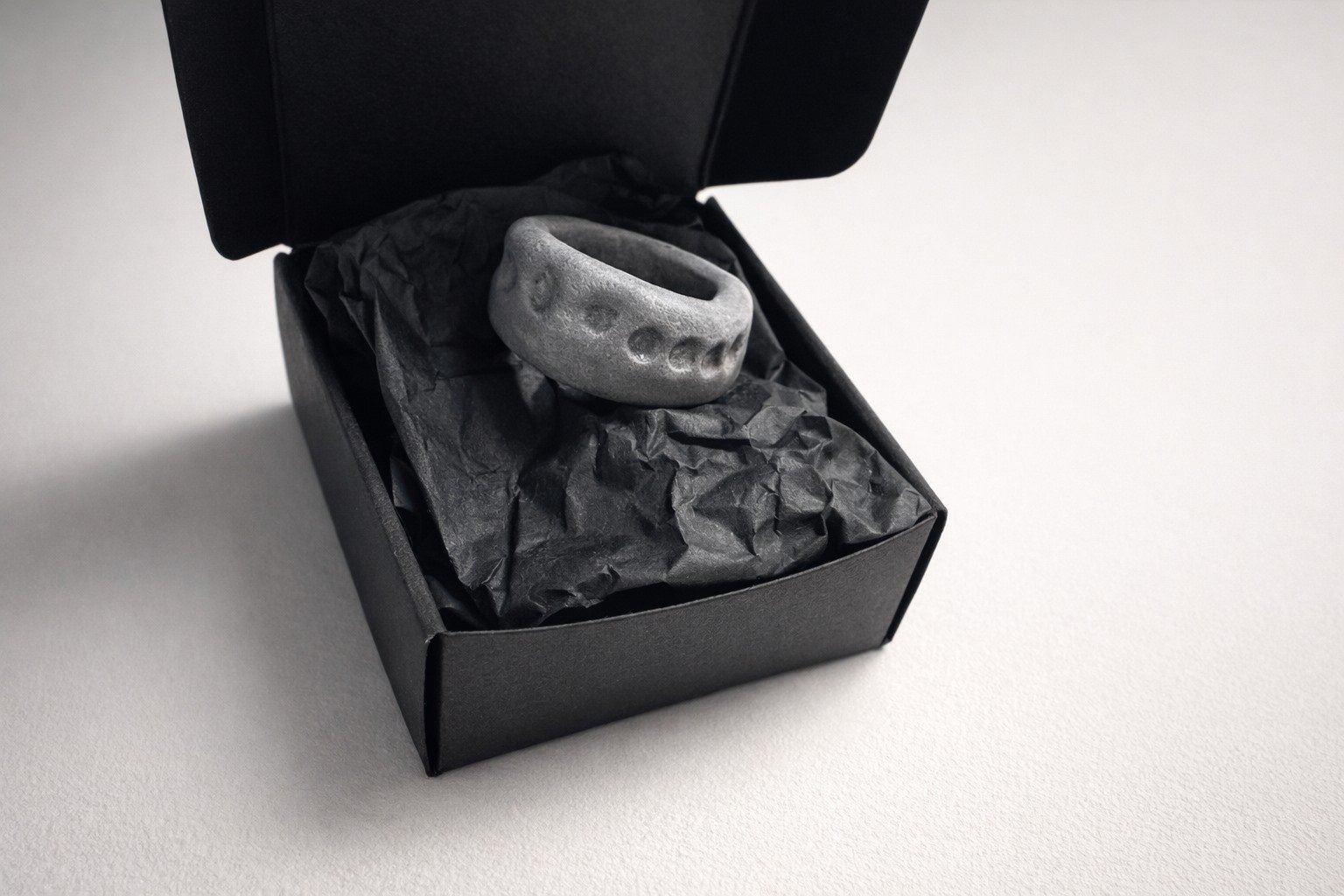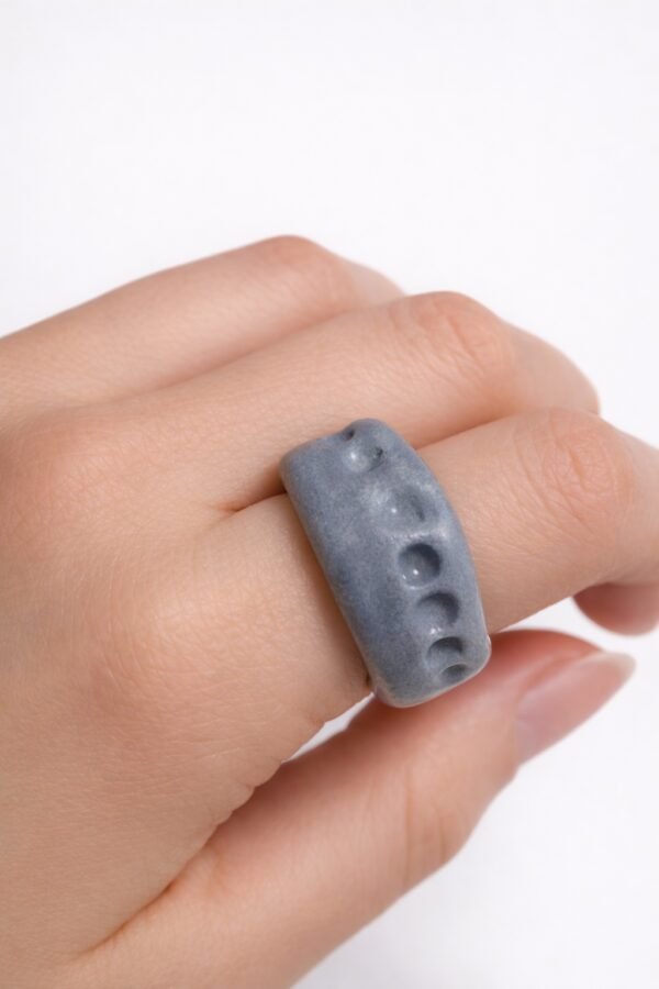 Cada anillo es único: las marcas no se repiten, las hendiduras nunca son iguales. Una joya que no busca perfección, sino presencia.