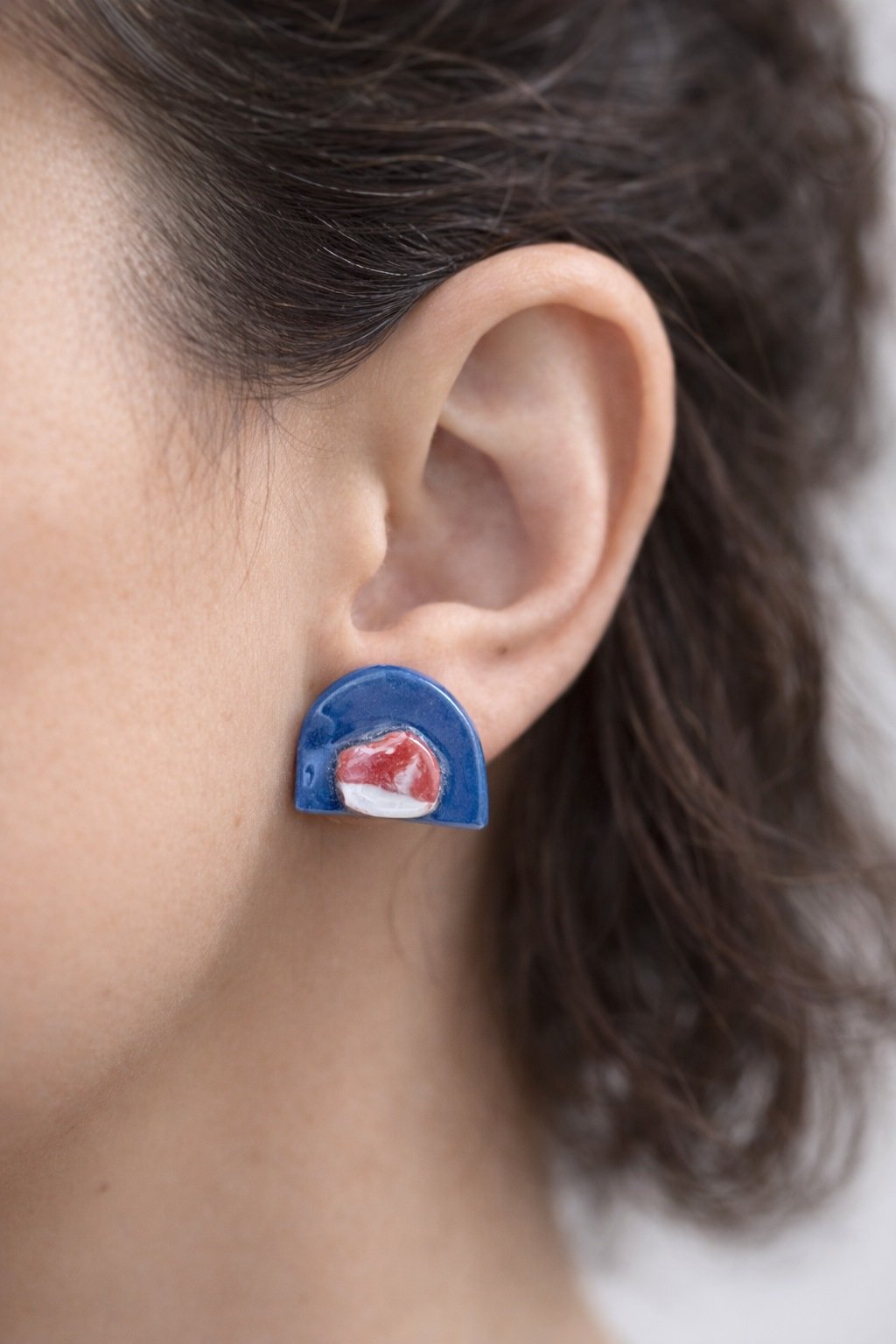 Envíos a España. Coste según destinoPendientes de porcelana de composición gráfica y carácter escultórico. La silueta semicircular aporta equilibrio y modernidad, mientras que el contraste cromático crea un diálogo visual intenso y sofisticado.