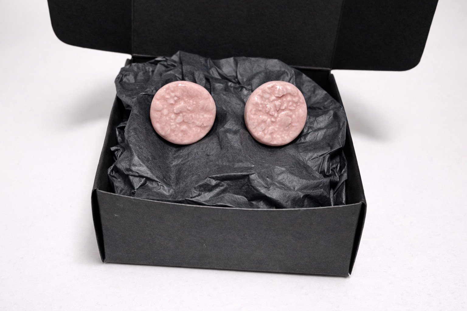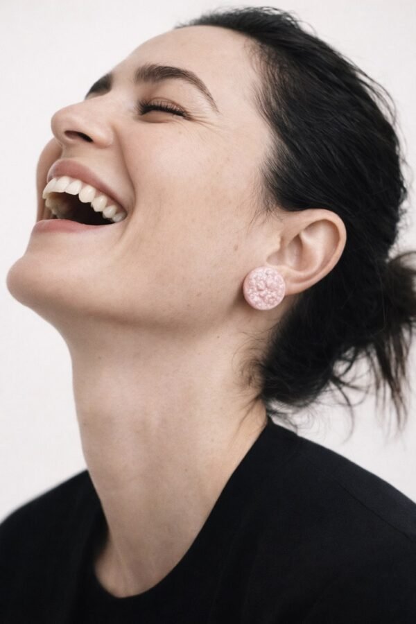 Hechos a mano en cerámica, cada pendiente es único. El esmalte crea una piel irregular y brillante, con pequeñas variaciones que atrapan la luz y revelan la riqueza del proceso artesanal. Disponibles en tonos intensos, como el rojo, y empolvados, como el rosa, el color se convierte en protagonista sin perder sutileza.