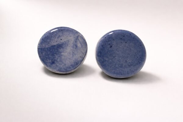Hechos a mano en cerámica, cada pendiente es único. El barro azul cobalto se despliega de manera sutil y orgánica, con ligeras variaciones y veladuras que recuerdan a la piedra pulida por el mar. Estas diferencias forman parte de su carácter artesanal y aportan profundidad a una forma aparentemente sencilla.