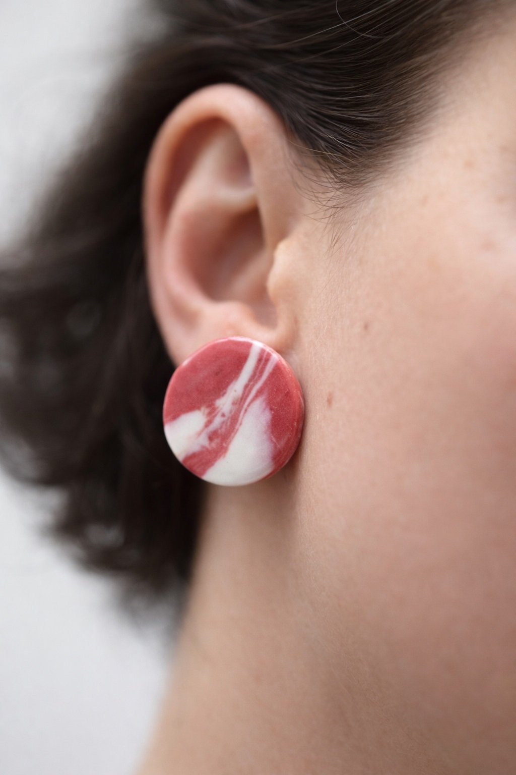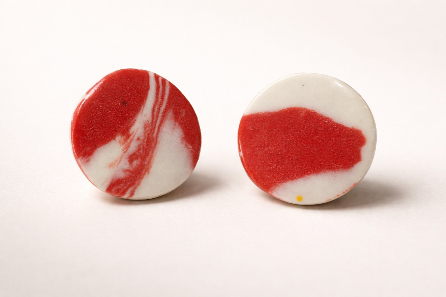 Envíos a España. Coste según destinoPendientes elaborados en porcelana, donde el color emerge como un gesto pictórico. La combinación de porcelanas en rojo y blanco crea transiciones suaves y orgánicas, evocando pinceladas, vetas minerales o paisajes abstractos.
