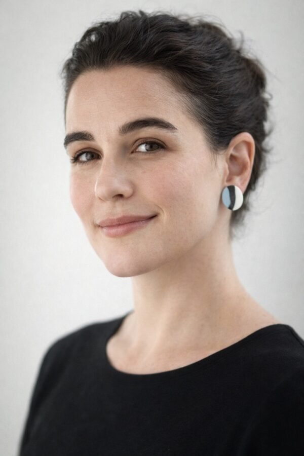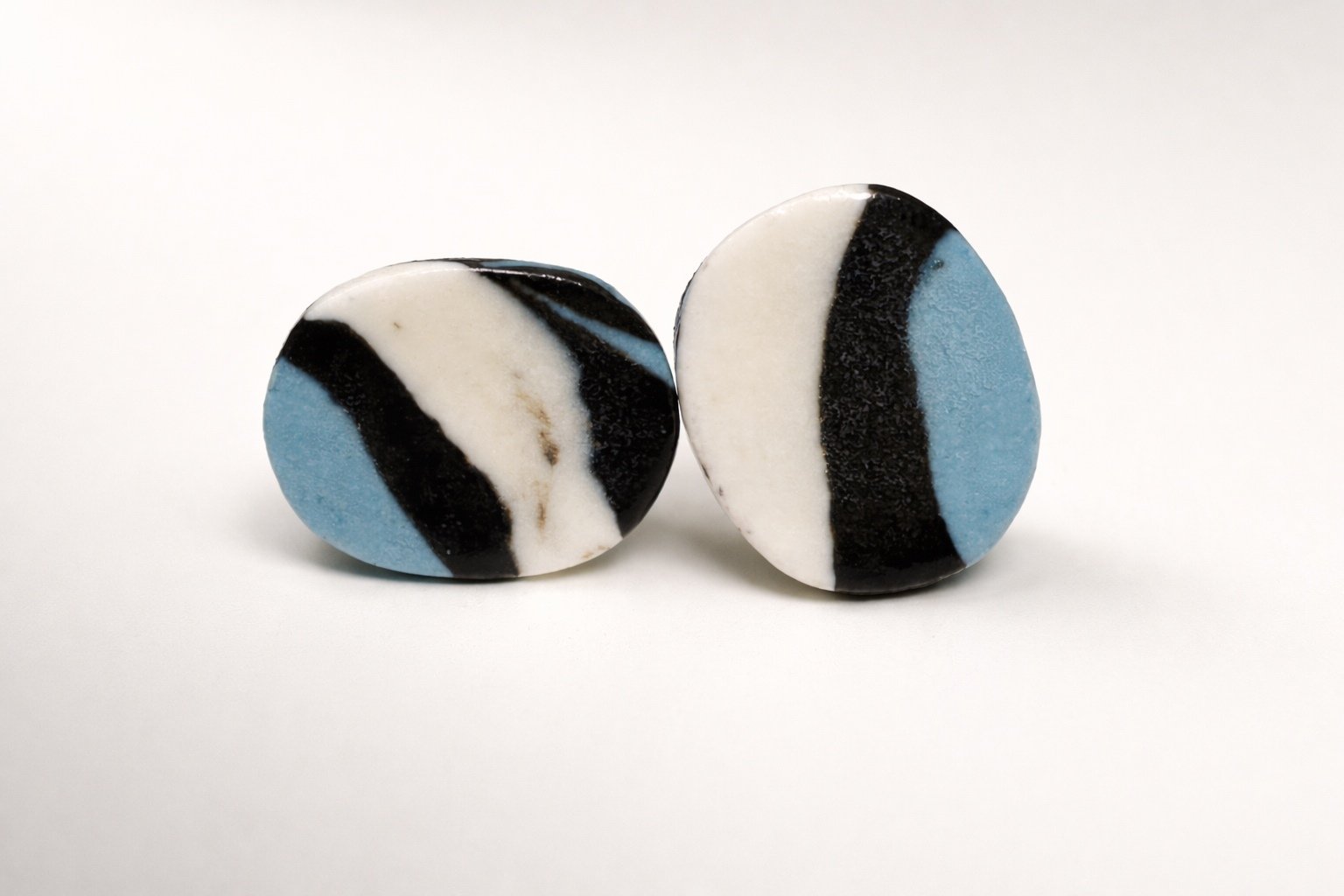 Envíos a España. Coste según destinoPendientes de porcelana que combinan equilibrio gráfico y sensibilidad artesanal. Las franjas en negro, blanco y azul se funden de manera orgánica, creando un patrón dinámico que recuerda a trazos pictóricos y contrastes naturales.